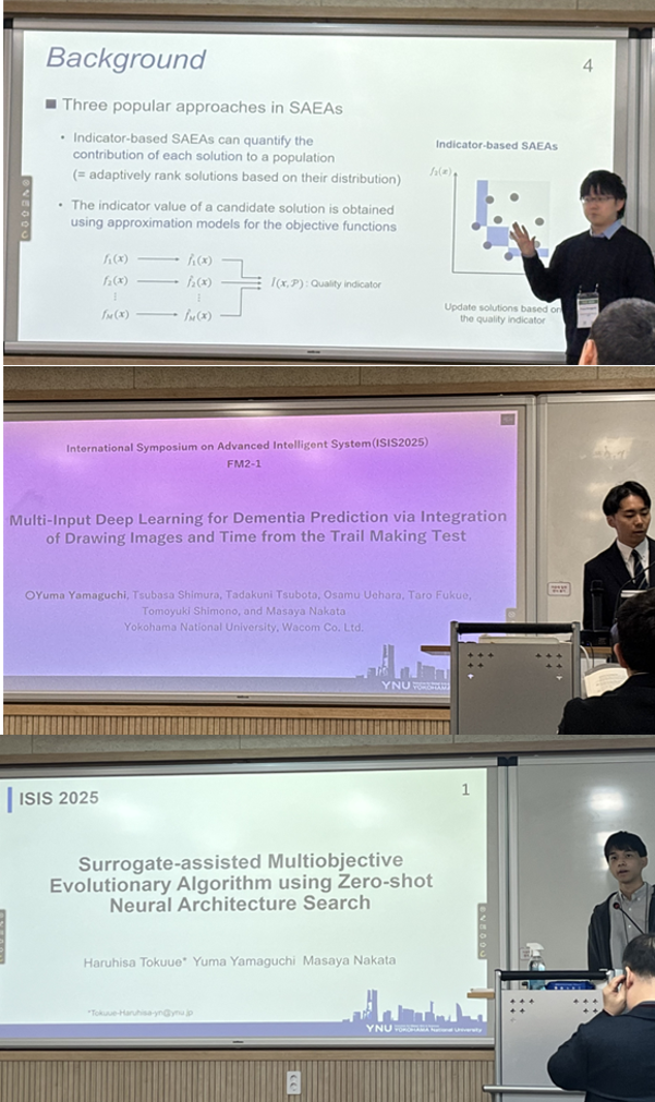 - Haruhisa Tokuue, Yuma Yamaguchi and Masaya Nakata, Surrogate-assisted Multiobjective Evolutionary Algorithm using Zero-shot Neural Architecture Search, The 26th International Symposium on Advanced Intelligent Systems (ISIS2025).